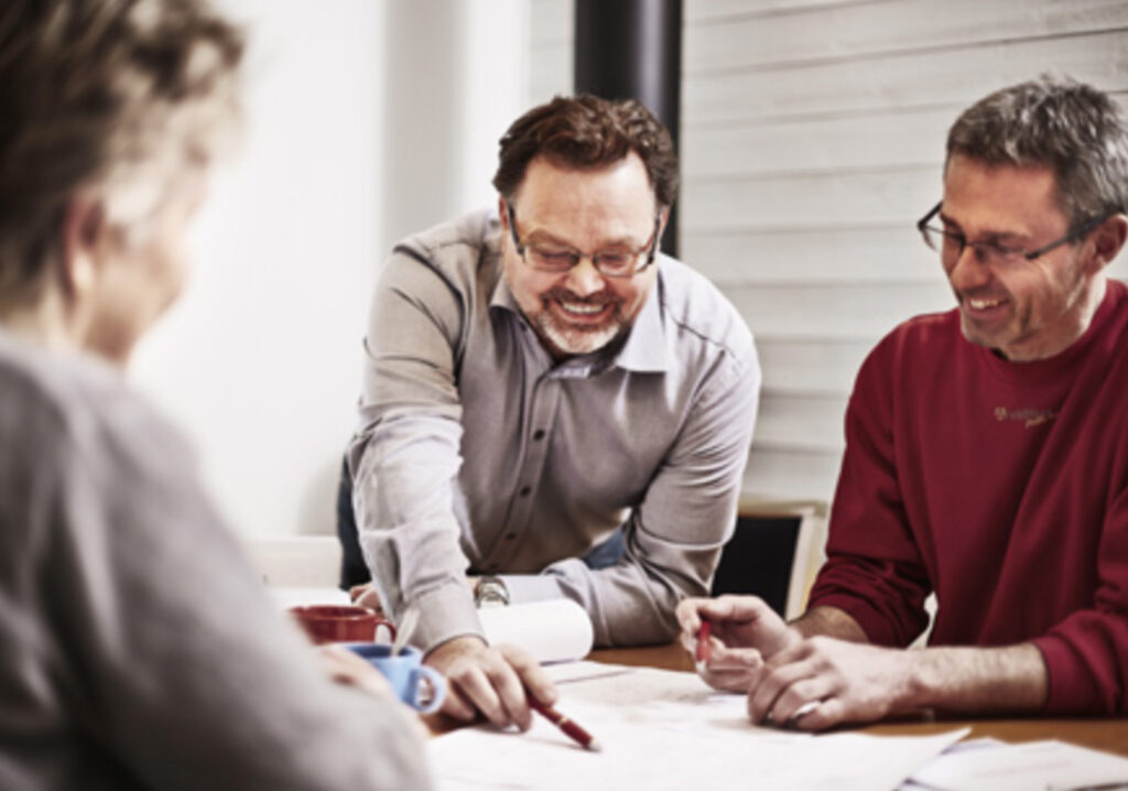 ”Vi ska med kvalité, tillgänglighet, kompetent personal och humana priser borga för nöjda kunder från idé till levererat hus.”