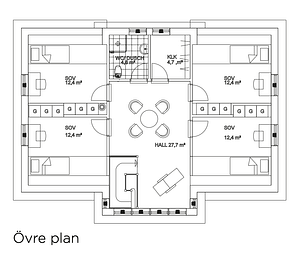 Barnens sovrum har vi placerat på överplan där det också finns ett stort allrum samt ett rymligt badrum och klädkammare.